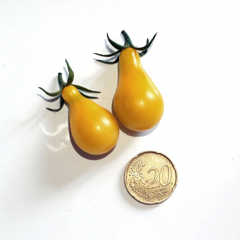 Pomodori piccoli, a forma di pera, di colore giallo.